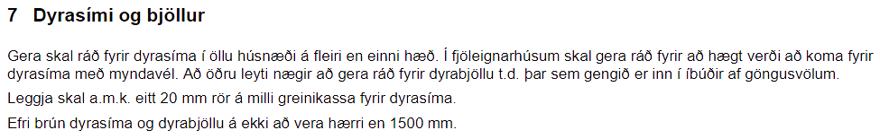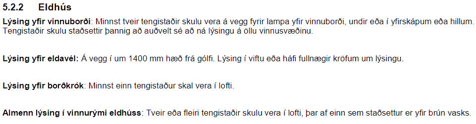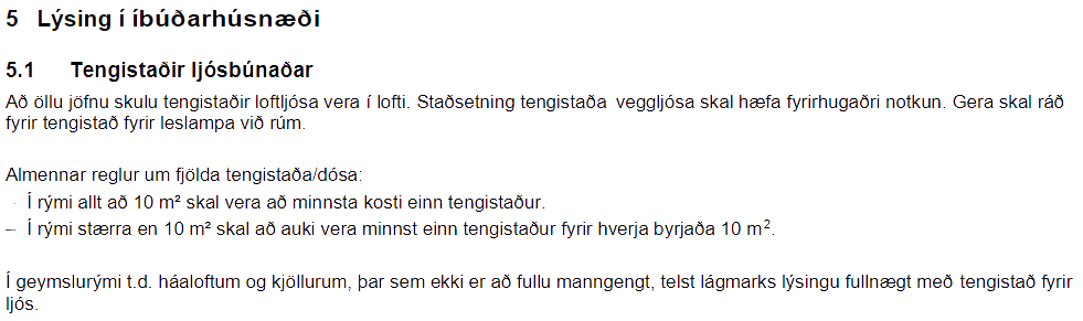 Lámarkskröfur um fjölda rafmagnstengla í íbúðum